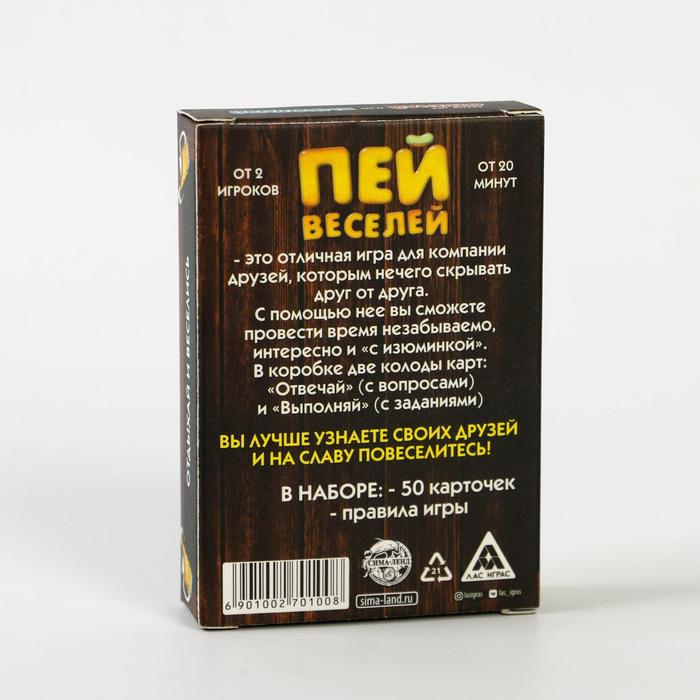 Купить игра для компании "пей веселей" 50 карт от 180 руб. с доставкой до пункта выдачи в Ковылкино. Интернет магазин ДекаМаркет. Оплата при получении.